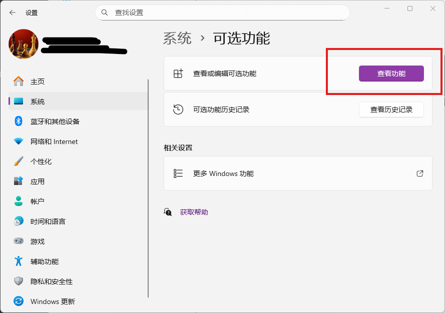 (2)在“投影到此电脑”页面,点击“可选功能”。